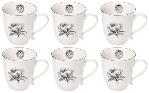 Кружка Home Queen Флорес фарфоровая 420 мл (6 штук в упаковке) <br><br>Посуда сделана из костяного фарфора. <br>Вместительный объём кружки позволит вдоволь насладиться любимым напитком, а рисунок, необычно расположенный внутри кружки, превратит каждое чаепитие в интригующее открытие. <br>Перед первым применением рекомендуется промыть. Рекомендуется ручная мойка с помощью щадящих моющих средств. <br>Можно мыть в посудомоечной машине. <br>Можно использовать в микроволновой печи, кроме режима «гриль». <br>Не использовать на открытом огне, в духовках, на варочных панелях любого типа. <br>Внимание! Товар поставляется в транспортном коробе. <br>Внимание! Товар поставляется без индивидуальной упаковки.