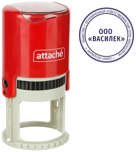 Оснастка для печати круглая Attache. Корпус изготовлен из прочного пластика. Цвет корпуса: красный. Диаметр: 40 мм. Автоматическое окрашивание: да. Легкая и чистая замена штемпельной подушки. Наличие крышки: нет.