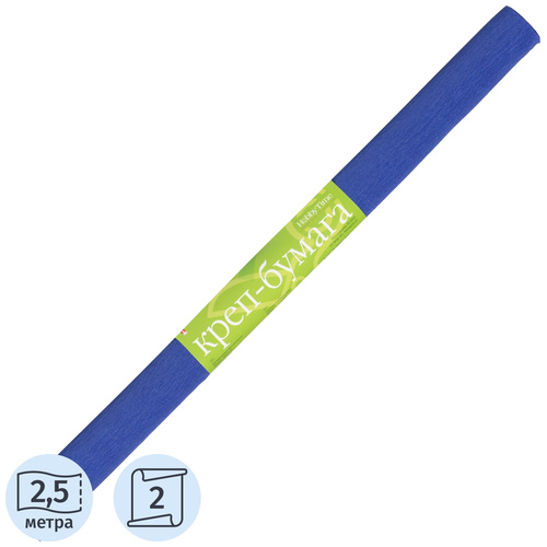 <p>Бумага крепированная Hobby Time в рулоне используется для упаковки подарков, оформления букетов и декоративных проектов. Лист размером 2500×500 мм изготовлен из тонкого материала плотностью 17 г/кв. м. Бумага имеет <nobr>тёмно-синий</nobr> цвет и двустороннее окрашивание. Эластичная фактура позволяет легко растягивать её, мять и придавать необходимую форму. Такой материал подходит для изготовления бумажных цветов, гирлянд, шаров и других украшений, применяемых при декорировании интерьеров и праздничных мероприятий.</p>