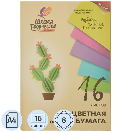 <p>16 листов (8 цветов) цветной бумаги из качественно прокрашенной офсетной бумаги плотностью 70г/кв.м. Набор упакован в папку из картона плотностью 200г/кв.м. Размер A4 формата — 210×297 мм.</p>