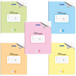 Внутренний блок плотностью 65 г/м2 из офсетной бумаги содержит 12 листов. Линовка – линия с полями. Обложка также изготовлена из офсета, но большей плотности. Скрепка надежно скрепляет листы между собой.