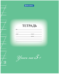 Внутренний блок плотностью 65 г/м2 из офсетной бумаги содержит 12 листов. Линовка - косая линия с полями. Обложка изготовлена из плотной мелованной бумаги. Скрепка надежно скрепляет листы между собой.