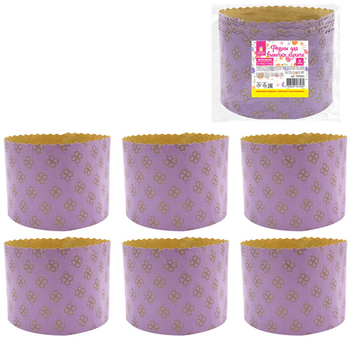 В комплекте 6 бумажных форм размером 7х6 см, выполненных в нежном лавандовом цвете с декоративным принтом в виде клевера – символа удачи и весны. Формы идеально подходят для расстойки, использования в духовке при t до +220 °С и не требуют смазки. После выпечки можно украсить кулич сверху глазурью, посыпкой или марципаном – форма дополнит праздничный вид десерта. Идеальны для домашней выпечки на Пасху!