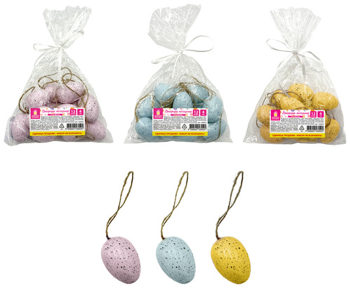 Комплект из 12 пластиковых яиц диаметром 4 см станет вашим незаменимым помощником в создании уютного праздничного настроения. Поставляются в трех цветах ассорти (без возможности выбора), придают декору живость и гармонию. Джутовая нить на каждом яйце позволяет легко подвешивать их где угодно: на ветви, гирлянды, весенний букет или для оформление стола.
