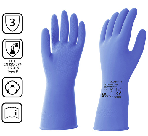 Перчатки латексные КЩС , HQ Profiline, сверхпрочные, плотные, хлопковое напыление
