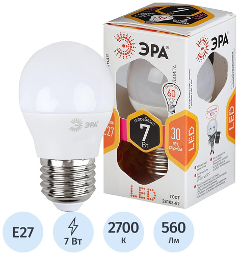 P45-7W-827-E27 7 Вт E27 P 2700 К 560 Лм матовая