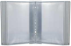 10 двусторонних панелей позволяют одновременно разместить до 20 листов формата А4. Опора и рамка демосистемы изготовлены из прочного АБС-пластика. Прозрачный карман из ПВХ обладает антибликовыми свойствами и надежно защищает документы от внешних воздействий.