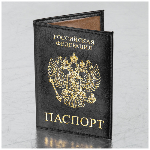 Модель выполнена из экокожи черного цвета и украшена тисненой надписью "Паспорт". Имеет простроченные края. На внутреннем развороте расположены два кармана из прозрачного пластика. Благодаря компактным размерам 97х138 мм удобно всегда носить с собой.