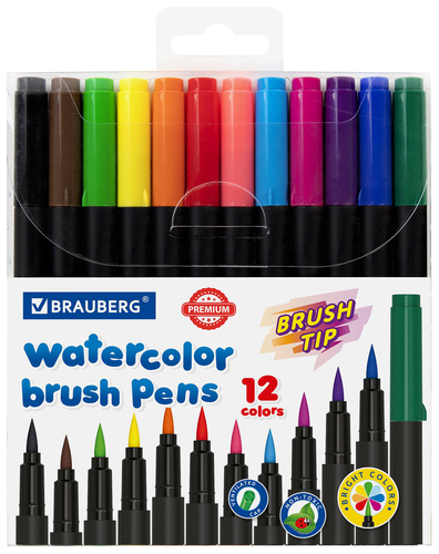 В наборе 12 круглых фломастеров из пластика длиной 145 мм и диаметром 10 мм. Гибкий наконечник-кисть из нейлона позволяет наносить линии от 1 до 6 мм, что дает возможность применять разнообразные техники при рисовании. Длина письма составляет 250 м: такого расхода хватит надолго. Фломастеры изготовлены на водной основе, поэтому они безопасны и смываются с большинства материалов и кожи. Наконечник устойчив к продавливанию, не проваливается внутрь корпуса. Колпачок оснащен специальными прорезями для вентиляции, которые делают использование фломастеров более безопасным. Рекомендованы для детей от 3-х лет.