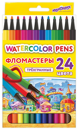 Обладают яркими насыщенными цветами в количестве 24 штук. Удобная трехгранная форма корпуса, длина которого 165 мм, а диаметр - 9 мм. Благодаря толщине линии письма 1-2 мм и диаметру пишущего узла 2,7 мм процесс раскрашивания становится легким. Длина письма составляет 300 м: такого расхода хватит надолго. Фломастеры изготовлены на водной основе, поэтому они безопасны и легко смываются с большинства материалов и кожи. Наконечник, устойчивый к продавливанию, не проваливается внутрь корпуса и не деформируется даже при сильном нажатии. Полипропиленовый корпус значительно продлевает срок службы фломастеров. Колпачок оснащен специальными прорезями для вентиляции, которые делают использование фломастеров более безопасным. Рекомендованы для детей от 3-х лет.
