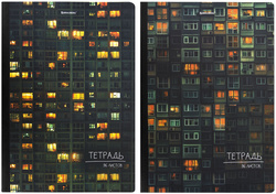 Внутренний блок содержит 96 листов офсетной бумаги плотностью 60 г/м2. Обложка изготовлена из мелованного картона повышенной плотности 300 г/м2 со специальной матовой ламинацией, устойчивой к царапинам и потертостям. Линовка блока –клетка с полями, выполненная в сером цвете для комфортного письма. Сшивка надежно соединяет листы между собой. Корешок тетради проклеен плотным материалом, дополняющим дизайн. Белизна блока – 100%. Формат листов – А4.
