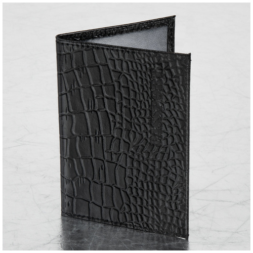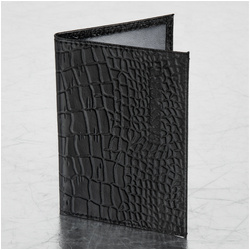 Модель выполнена из натуральной кожи с отделкой под кожу крокодила черного цвета, что подчеркнет стиль и изысканный вкус обладателя. Украшена тисненой надписью "PASSPORT", края прострочены. На внутреннем развороте расположены два кармана из прозрачного пластика. Упакована в пакет с европодвесом.