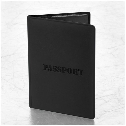 Модель выполнена из мягкого полиуретана классического черного цвета и украшена тисненой надписью "PASSPORT". На внутреннем развороте расположены два кармана из прозрачного пластика. Благодаря компактным размерам обложки (97х138 мм) паспорт удобно всегда носить с собой.