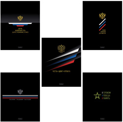 Серия тетрадей А5 формата (167х202 мм), 48 листов. Материал обложки – мелованный картон. 5 дизайнов в блоке. Вид отделки – глянцевая ламинация. Внутренний блок – офсетная бумага, плотность 60–65 г/м2, клетка, красные поля. Белизна – 100%. Вид крепления – скоба.
