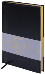 Внутренний блок включает 160 листов тонированной бумаги плотностью 70 г/м2. Каждая страничка имеет перфорированный угол. Благодаря стандартному формату А5 ежедневник удобно использовать как в офисе, так и на выездных деловых встречах. Твердая обложка стилизована под старинную кожу, подходит для горячего тиснения. Срез ежедневника фольгирован золотой фольгой, что придает ему особый шарм. Дополнением является закладка-ляссе, с помощью которой при необходимости можно быстро открыть ежедневник на нужной странице. Помимо прочего ежедневник снабжен обширным справочным материалом. В конце ежедневника есть 7 страниц для записей и заметок.