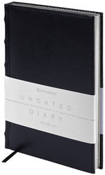 Внутренний блок включает 160 листов тонированной бумаги плотностью 70 г/м2. Каждая страничка имеет перфорированный угол. Благодаря стандартному формату А5 ежедневник удобно использовать как в офисе, так и на выездных деловых встречах. Твердая обложка стилизована под старинную кожу, подходит для горячего тиснения. Срез ежедневника фольгирован серебряной фольгой, что придает ему особый шарм. Дополнением является закладка-ляссе, с помощью которой при необходимости можно быстро открыть ежедневник на нужной странице. Помимо прочего ежедневник снабжен обширным справочным материалом. В конце ежедневника есть 7 страниц для записей и заметок.