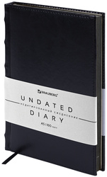 Внутренний блок включает 160 листов тонированной бумаги плотностью 70 г/м2. Каждая страничка имеет перфорированный угол. Благодаря стандартному формату А5 ежедневник удобно использовать как в офисе, так и на выездных деловых встречах. Твердая обложка стилизована под старинную кожу, подходит для горячего тиснения. Срез ежедневника фольгирован черной фольгой, что придает ему особый шарм. Дополнением является закладка-ляссе, с помощью которой при необходимости можно быстро открыть ежедневник на нужной странице. Помимо прочего ежедневник снабжен обширным справочным материалом. В конце ежедневника есть 7 страниц для записей и заметок.