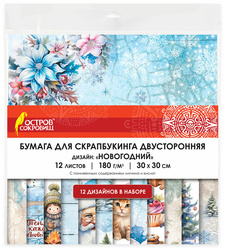 30х30 см Новогодний дизайн, двусторонняя, 12 листов, 180 г/м2