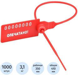 <p>Пломба пластиковая номерная Универсал 350 мм 1000 штук в упаковке. Пломба сконструирована так, чтобы попытка вскрытия и повторной установки без видимых повреждений была невозможна. Каждая пломба снабжена маркировкой. Предназначена для опломбирования контейнеров, складских помещений, транспортных средств, торговых и складских помещений, контейнеров, кейсов, аптечек, игровых автоматов, автотранспортных средств и любого другого оборудования.<br /></p>