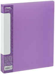 Папка с 40 вкладышами «СТАММ» серии «Кристалл» – отличный помощник для хранения бумаг формата А4. Изделие выполнено в полупрозрачном фиолетовом цвете. Внешняя сторона папки дополнена фактурным паттерном «Кристалл», сохраняющим внешний вид изделия от загрязнений и повреждений. Размер изделия составляет 310235 мм. Ширина корешка – 21 мм. Тип скрепления – термосварка. Бумагам, вложенным в папку, не требуется перфорация дыроколом. На корешке папки есть удобный карман. Папка упакована в индивидуальный пакет.<br/>• Размер: 310235 мм;<br/>• Толщина материала: 700 мкм;<br/>• Формат: А4;<br/>• Количество вкладышей: 40;<br/>• Цвет: фиолетовый;<br/>• Тип скрепления: термосварка;<br/>• Ширина корешка: 21 мм.