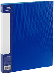 Папка с 100 вкладышами «СТАММ» серии «Кристалл» – отличный помощник для хранения бумаг формата А4. Изделие выполнено в полупрозрачном синем цвете. Внешняя сторона папки дополнена фактурным паттерном «Кристалл», сохраняющим внешний вид изделия от загрязнений и повреждений. Размер изделия составляет 310235 мм. Ширина корешка – 30 мм. Тип скрепления – термосварка. Бумагам, вложенным в папку, не требуется перфорация дыроколом. На корешке папки есть удобный карман. Папка упакована в индивидуальный пакет.<br/>• Размер: 310235 мм;<br/>• Толщина материала: 800 мкм;<br/>• Формат: А4;<br/>• Количество вкладышей: 80;<br/>• Цвет: синий;<br/>• Тип скрепления: термосварка;<br/>• Ширина корешка: 30 мм.