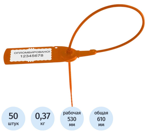 Пломба применяется для предотвращения попыток доступа к какому-либо объекту для изъятия или подмены. Пломба сконструирована так, чтобы попытка вскрытия и повторной установки без видимых повреждений была невозможна. Каждая пломба снабжена маркировкой. Предназначена для опломбирования контейнеров, складских помещений, транспортных средств, торговых и складских помещений, контейнеров, кейсов, игровых автоматов, автотранспортных средств и любого другого оборудования. В качестве материала для изготовления пластиковых пломб используется композитный полипропилен с нейлоновой вставкой, увеличивающей прочность изделия до 210Н.