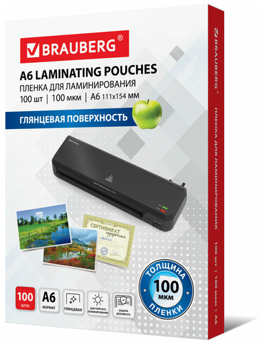 Пленка для ламинирования BRAUBERG формата A6 (111х154 мм) имеет уникальный состав: полиэтилентерефталат (PET), этиленвинилацетат (EVA), полиэтилен (LDPE). Промежуточный слой полиэтилена (LDPE) выступает как связующий элемент между слоями PET и EVA, служит дополнительной защитой от вероятного вытекания клея из-под пленки при ламинировании. Полиэтилен (PE) придает пакетам прочность эластичность и износостойкость. Глянцевое покрытие пленки способствует сохранению и максимальной передаче цвета ламинируемого изображения.