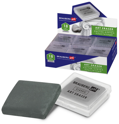 Ластик изготовлен из термопластичной резины. Пластичная тестообразная структура ластика способствует более точному стиранию и созданию бликов. Абсорбирует графит любой степени твердости. Не царапает бумагу. Подходит для угольных и пастельных мелков. Благодаря пластиковому футляру больше не нужно думать как и где хранить клячку после первого использования. Размер ластика - 40х36х10 мм.