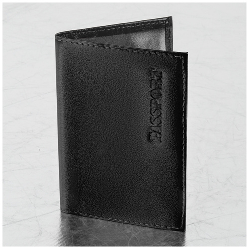 Модель выполнена из натуральной кожи "галант" черного цвета, что подчеркнет стиль и изысканный вкус обладателя. Украшена тисненой надписью "PASSPORT", края прострочены. На внутреннем развороте расположены два кармана из прозрачного пластика. Упакована в пакет с европодвесом.