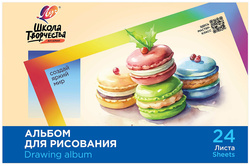 Содержит 24 листа плотностью 100 г/м2 формата А4 (288х203 мм). Красочная обложка выполнена из мелованного картона. Скрепление листов осуществляется с помощью скрепки. Подходит для смешанных техник рисования: красками, карандашами и фломастерами, ручками, углем, сухой и масляной пастелью и для других сухих материалов.