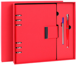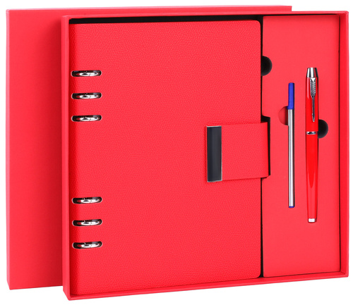 ежедневник на кольцах с кнопкой, ручка, стержень, подарочная коробка, красный