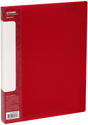 Папка на четырёх кольцах «СТАММ» серии «Кристалл» предназначена для сшивания и хранения документов формата А4. Изделие выполнено в полупрозрачном красном цвете. Внешняя сторона папки дополнена фактурным паттерном «Кристалл», который защищает изделие от загрязнений и повреждений. Папка изготовлена из качественного полипропилена толщиной 700 мкм. Размер папки — 310250 мм. Кольцевой механизм, состоящий из четырёх колец диаметром 25 мм, надёжно держит документы. Ширина корешка — 40 мм, что позволяет вмещать до 250 листов. Папка подходит для хранения как перфорированных документов, так и папок-вкладышей с универсальной перфорацией. На корешке находится карман. Папка упакована в индивидуальный пакет.<br/>• Размер: 310250 мм;<br/>• Толщина материала: 700 мкм;<br/>• Формат: А4;<br/>• Вместимость в листах: до 250 листов;<br/>• Цвет: красный;<br/>• Ширина корешка: 40 мм.