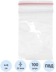 Пакет с замком zip-lock 4×6 см 32 мкм (ПВД, 100 штук в упаковке) имеет размер 4 на 6 сантиметров. Изготовлен из высококачественного полиэтилена с плотностью 32 мкм. Используется в качестве упаковки для: пищевых продуктов, фасовки товара, бытовых вещей, фурнитуры, крепежей, бижутерии. Материал достаточно крепкий: пакет выдерживает многократное использование. Замок Zip-Lock защищает содержимое от влаги и запахов. Пакеты имеют прозрачную застежку.<br>Товар поставляется в ассортименте без возможности выбора цвета.