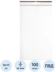 <p>Пакет c замком <nobr>zip-lock</nobr> размером 10×17 см из прозрачного полиэтилена высокого давления оснащен <nobr>замком-защелкой</nobr>. Оптимален для хранения и переноски мелких предметов (например, монет, пуговиц, бисера) и бумажных документов. Полиэтиленовые пакеты ПВД защищают от влаги и грязи. В упаковке содержится 100 пакетов. Пакеты имеют прозрачную застежку. Товар поставляется в ассортименте без возможности выбора цвета.</p>