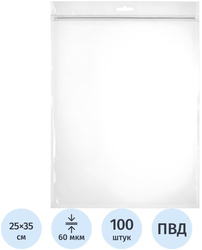 <p>Пакет c замком <nobr>zip-lock</nobr> размером 25×35 см из прозрачного полиэтилена высокого давления оснащен <nobr>замком-защелкой</nobr>. Оптимален для хранения и переноски мелких предметов (например, монет, пуговиц, бисера) и бумажных документов. Полиэтиленовые пакеты ПВД защищают от влаги и грязи. В упаковке содержится 100 пакетов. Пакеты имеют прозрачную застежку. Товар поставляется в ассортименте без возможности выбора цвета.</p>