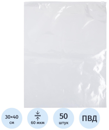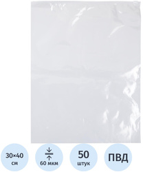 прозрачный, 60 мкм, 300х400 мм, 50 шт/уп