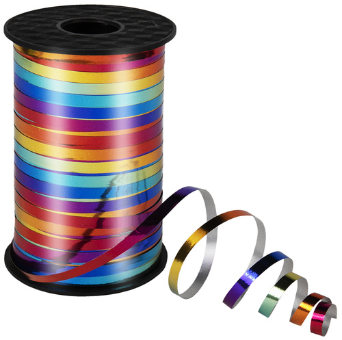 Лента шириной 5 мм и длиной 250 м изготовлена из прочного полипропилена (70%) и полиэтилена (15%) и полиэтилентерефталата (15%). Толщина ленты 130 мкм (0,13 мм). Цвет ленты - мультицветный металлик. Лента намотана на пластиковую бабину и упакована в термоусадочную пленку, поверх которой есть два стикера (цветной стикер с демонстрацией товара и черно-белый стикер с технической информацией).