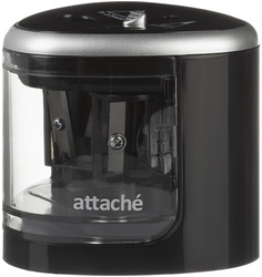 Электрическая точилка для заточки карандашей Attache с вместительным съемным контейнером для стружки. Имеет 2 отверстия. Изготовлена из пластика черного и серебристого цвета. Предназначена для заточки цветных и чернографитных карандашей диаметром 6-8, 9-12 мм. Легкая и безопасная в использовании точилка. Автоматическое включение/выключение. Противоскользящее основание. Размеры точилки: 70×75×70 мм. Работает от 4-х батареек АА (в комплект не входят).<br> Перед использованием внимательно ознакомьтесь с инструкцией.