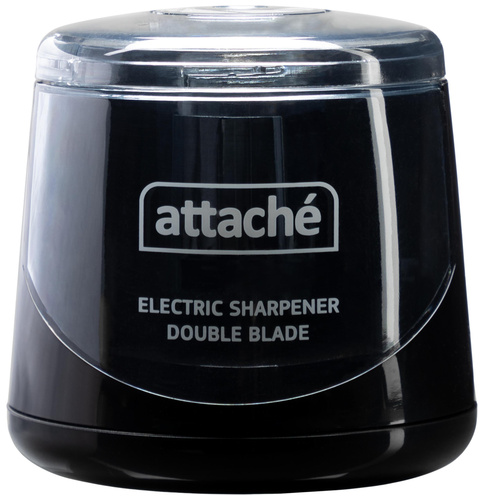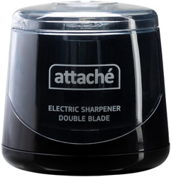 Точилка электрическая Attache чёрная<br><br>Точилка предназначена для заточки чернографитных и цветных карандашей диаметром 6-8 мм.<br>Вращающееся прямое лезвие обеспечивает качественную и мягкую заточку карандаша.<br>Имеет вместительный съёмный контейнер для стружки и противоскользящее основание.<br>Предусмотрена защита точилки от включения при снятом контейнере.<br>Работает от 2 батареек АА (в комплект не входят).<br>Перед использованием внимательно ознакомьтесь с инструкцией по применению.
