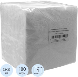 Салфетки бумажные 1-слойные 22×22 см белые (100 листов в пачке)<br><br>Однослойные салфетки белого цвета с тиснением сложены вчетверо, могут использоваться в повседневном быту, на офисной кухне, на фуршетах и предприятиях общественного питания. Поставляются в полиэтиленовой упаковке по 100 шт. <br>Изготовлены из 100% целлюлозы.<br>Размеры развёрнутой салфетки: 22×22 см.