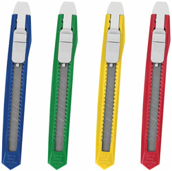 Благодаря своей обтекаемой форме нож удобно держать в руке. Пластиковый корпус с клипом защищает лезвие шириной 9 мм от повреждений и гарантирует безопасность применения. Фиксатор позволяет закрепить лезвие в нужном положении с помощью защелки.
