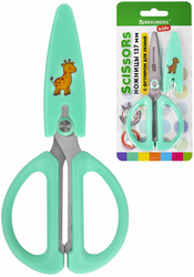 Яркие детские ножницы снабжены резиновыми рукоятками пастельно-мятного цвета и чехлом. Ребенок без труда сможет пользоваться ножницами, так как их длина всего 137 мм. Симметричные ручки помогают уменьшить нагрузку на руку ребенка даже при интенсивной и продолжительной работе. Ручки из резины повышенной прочности и лезвия из нержавеющей стали обеспечивают ножницам максимально долгий срок службы.