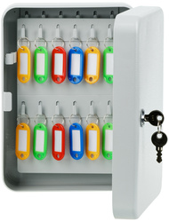 Ключница из прочной стали толщиной 0,8 мм. В комплект входит: <br/>- 48 пластиковых брелоков с бирками<br/>- 2 ключа от дверцы<br/>- набор для крепежа<br/>- наклейки для нумерации ключей