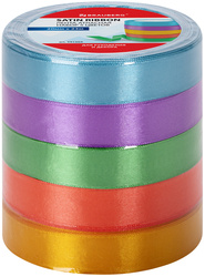Изделие представляет собой набор из атласных лент, изготовленных из 100% полиэстера, с ткаными кромками на обоих краях. Кромка на краях лент выполнена с применением полиэстеровой нити. Ленты изготовлены с применением саржевого способа переплетения нитей. В набор входит 5 лент голубого, фиолетового, зеленого, желтого и красно-оранжевого цветов шириной 20 мм (± 3%) и длиной 23 м, каждая из которых намотана на втулку из пенополистирола. Набор лент упакован в термоусадочную пленку, содержащую этикетку с краткой информацией о товаре.