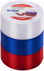 Изделие представляет собой набор из атласных лент, изготовленных из 100% полиэстера, с ткаными кромками на обоих краях. Кромка на краях лент выполнена с применением полиэстеровой нити. Ленты изготовлены с применением саржевого способа переплетения нитей. В набор входит 3 ленты белого, синего и красного цветов шириной 40 мм (± 3%) и длиной 23 м, каждая из которых намотана на втулку из пенополистирола. Набор лент упакован в термоусадочную пленку, содержащую этикетку с краткой информацией о товаре.