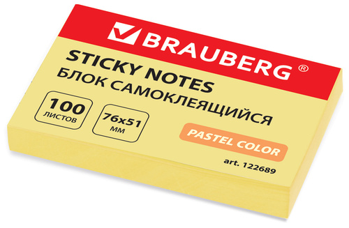 Стикеры классического жёлтого цвета в форме прямоугольника 76х51 мм состоят из 100 листов. Плотность бумаги составляет 75 г/м2. Клейкий слой - 35 Н/м. Легко клеятся к любой поверхности. Не оставляют следов. Упакованы в полиэтиленовую пленку.