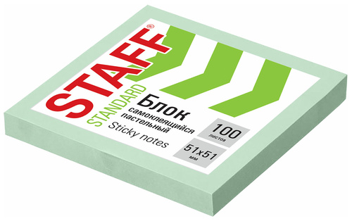 Стикеры зеленого пастельного цвета в форме квадрата 51х51 мм состоят из 100 листов. Плотность бумаги составляет 65 г/м2. Клейкий слой - 18 Н/м. Легко клеятся к любой поверхности. Не оставляют следов. Упакованы в полиэтиленовую пленку.