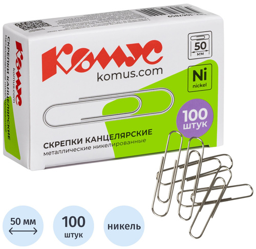 Скрепки Комус незаменимы при работе в офисе или дома, когда нужно соединить несколько бумаг, например, все листы договора или другие важные документы. Металлические с никелевым покрытием. Имеют закругленную форму, что позволяет надежно скреплять документы. Длина 50 мм. Цвет — серебристый. В упаковке 100 скрепок. В промежуточной упаковке 10 упаковок по 100 скрепок.
