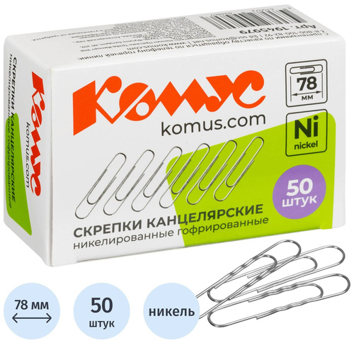 Скрепки канцелярские 78 мм Комус металлические с никелевым покрытием (50 штук в упаковке) — незаменимый атрибут работы с документами и бумагами в офисе, дома, на учебе. Эти изделия предназначены для скрепления нескольких листов любого формата воедино, с возможностью их разъединения при необходимости. Скрепки Комус сделают хранение и перенос нескольких бумаг более удобными и внесут порядок в ваше рабочее пространство. Скрепки овальной формы имеют никелевое покрытие, цвет у изделий серебристый — классика для деловой атмосферы. Упаковка включает 50 несгибаемых, гофрированных скрепок. Длина одной скрепки равняется 78 миллиметрам. Страна происхождения — Китай.
