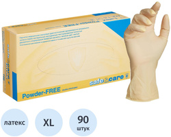 Назначение: нестерильные смотровые перчатки из латекса обеспечивают надёжную защиту от несанкционированных проколов и контактов с агрессивными химическими веществами.<br>Конструкция: внешняя поверхность этих перчаток текстурированная, благодаря чему во время работы сохраняется высокая тактильная чувствительность и обеспечивается особо прочный захват. Одноразовые перчатки внутри неопудрены, благодаря чему упрощается их надевание.<br>Форма: смотровые перчатки обладают неанатомической (плоской) формой, благодаря чему нейтрализуется усталость мышц кисти даже после длительной работы.<br>Дополнительные свойства: манжеты перчаток вывернуты наизнанку, что упрощает надевание.<br>Размер перчаток — 9-10 (XL). Длина — 245 мм.<br>Противопоказания и меры предосторожности: непереносимость материалов.<br>Упаковка и условия хранения: перчатки упакованы в картонную коробку. Хранить перчатки следует в сухом, прохладном и тёмном месте.